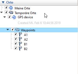 Wenn wir die Datei weiterreichen hat auch dieser Nutzer die Wegpunkte. Auf dem eigenen Gerät können wir die Wegpunkte (Doppeleinträge) natürlich löschen.