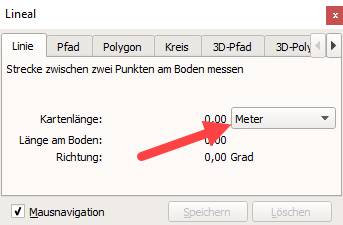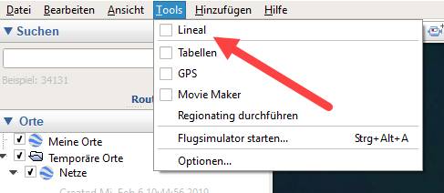 Jetzt wollen wir die Linien einzeichnen (der Cursor steht immer noch links auf „Waypoints“). Dazu klicken wir in der Menüleiste auf Tools und dann auf Lineal.