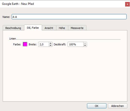 Nun klicken wir auf den Ausgangspunkt und danach den Endpunkt unserer Linien, bestätigen mit OK. Die Linie speichern wir z. B. A-A.