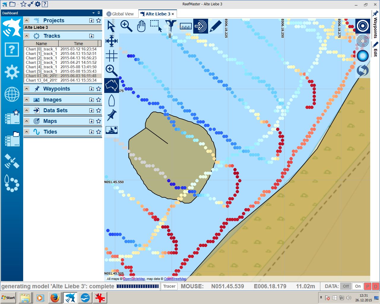 In einigen Bereichen (Ufer) wirken sich die ungenauen GPS DAten besonders stark aus. Ich hatte versucht die Bereiche (gewissen Steckenpunkte bei meinen Fahrten) zu löschen. Mein Ziel war es die Bereiche erneut abzurudern, um die Tiefendaten zu optmieren.