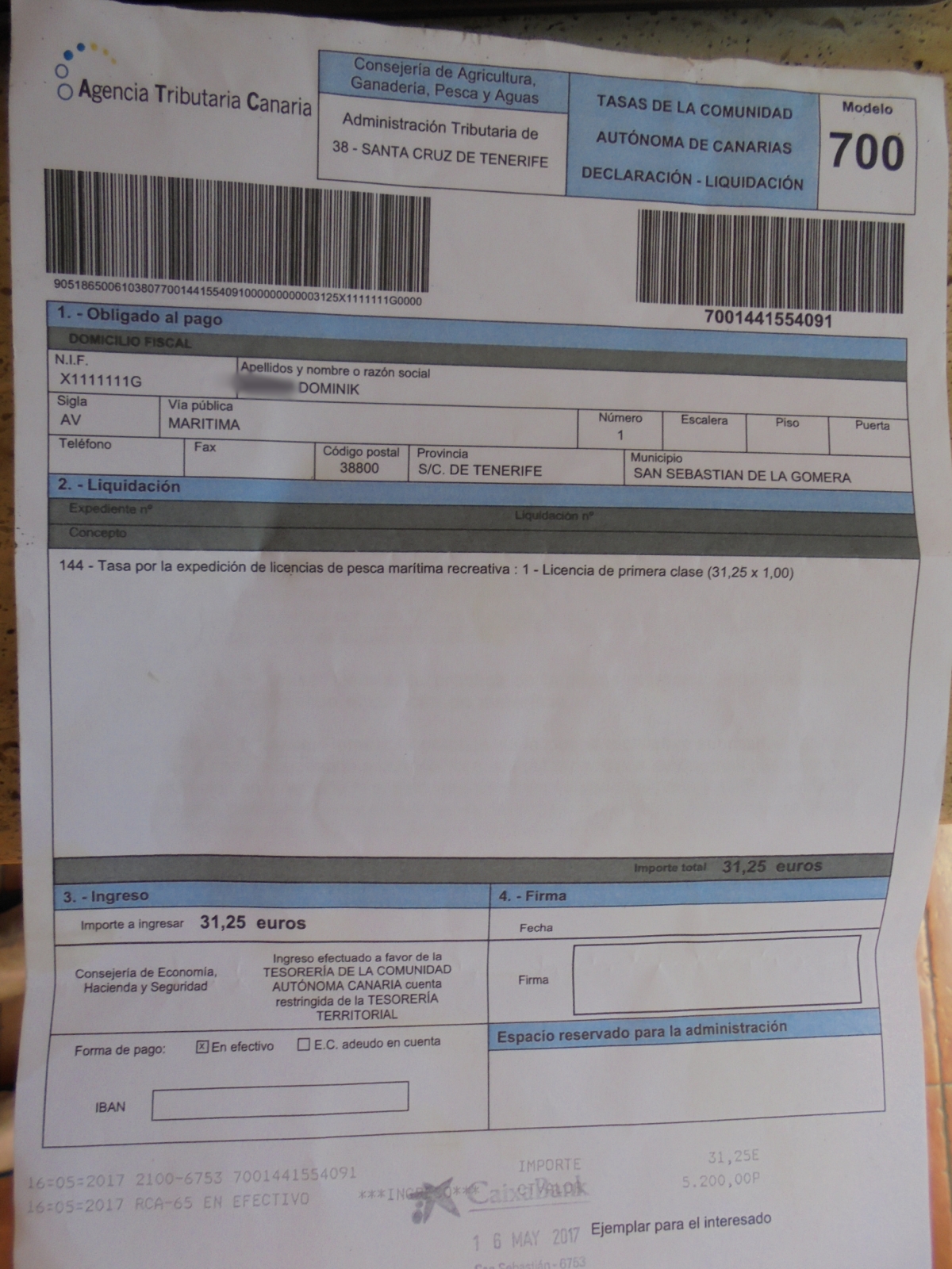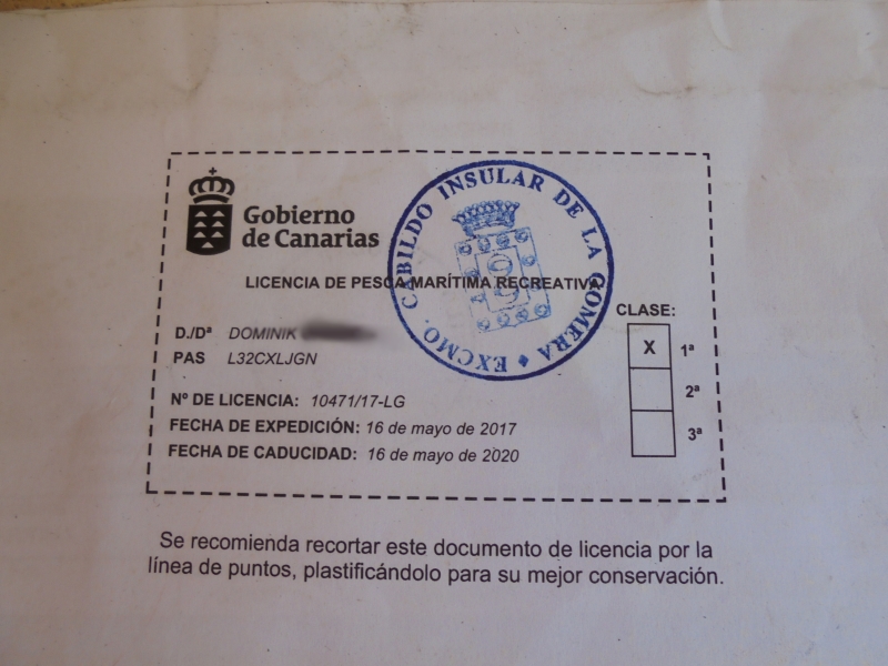 Wieder rein Papiere von der Bank abgegeben und ich erhalte meine Angellizenz. Gültig für 3 Jahre.