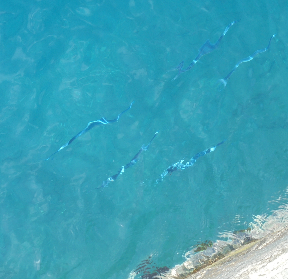 Plötzlich entdeckte ich am Ende der Mole einen Trupp Hornhechte.