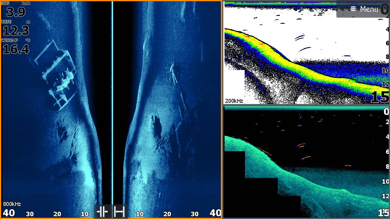 Reefmaster hat doch zunächst gar nichts mit den hier dargestellten Down- und Sidescan-Bildern zu tun! Die werden vom Plotter erzeugt.