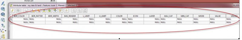 korrekter Struktur in der Attributtabelle. Links sind alle Attribute aus "lake" und
