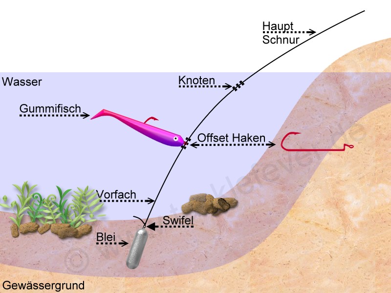 Die Vorteile beim Drop-Shot Angeln gegenüber der Gummifisch Montage am Jighead möchten wir euch hier kurz erläutern. Bei der Gummifisch Montage am Jighead kann der Bait ganz flexibel am Grund oder je nach Gewicht des Jigheads auch im Freiwasser angeboten werden.