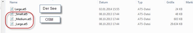 die OSM ist Vektor, der See auch, also erst mal keine AT5.xml erforderlich. Es sei denn Du machst auf Transparenz, dann brauchst Du sowieso noch Raster. Hier mal ein "Beweis". Allerdings weiß ich nicht, wie viele LAYER man runter gehen kann. Ich habe aber schon deutlich größere Seen gemacht mit viel mehr Details. Ist aber insgesamt eine gute Frage, der ich mal nachgehen werde.