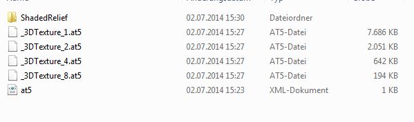Die vier Dateien mit "_3DTexture...." gehören in den Ordner (IMC Manual S. 61 lesen!!!). und die Vektor-AT5 und die AT5.xml in den Stamm. ShadedRelief muss natürlich im Gerät auch eingestellt sein.