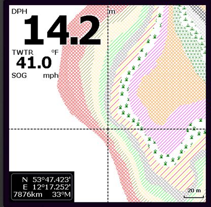 Das dritte Bild zeigt die Karte auf dem Echolot.