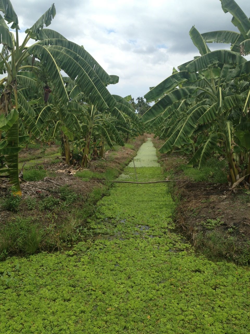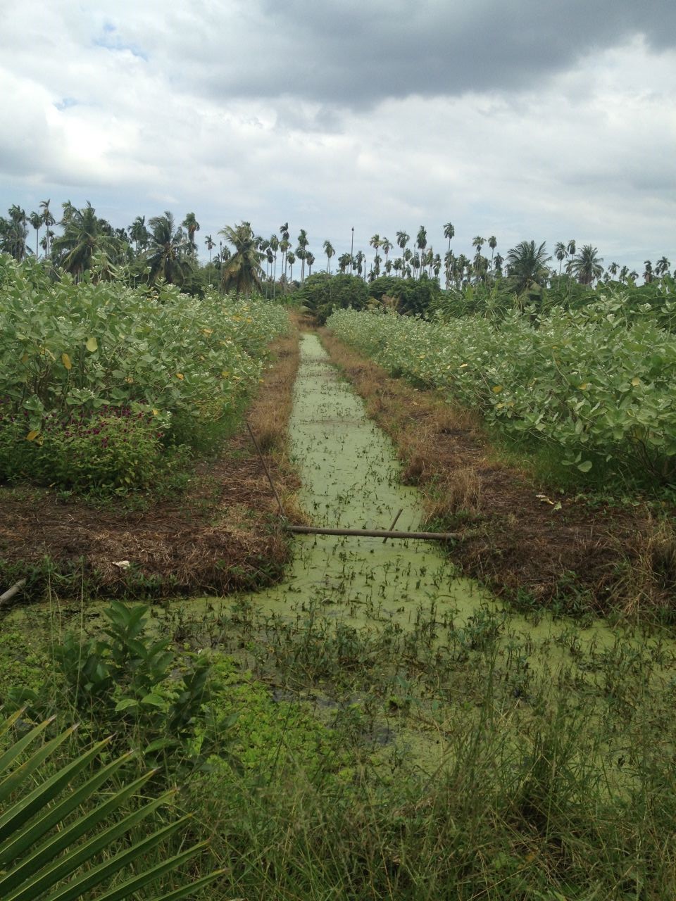 Die verschiedenen Pflanzstreifen sind vollständig von Bewässerungsgräben umgeben, in denen