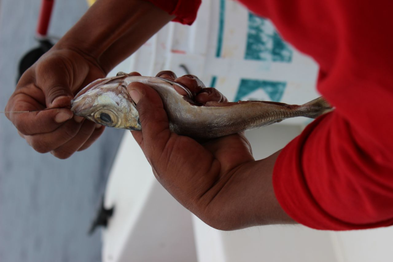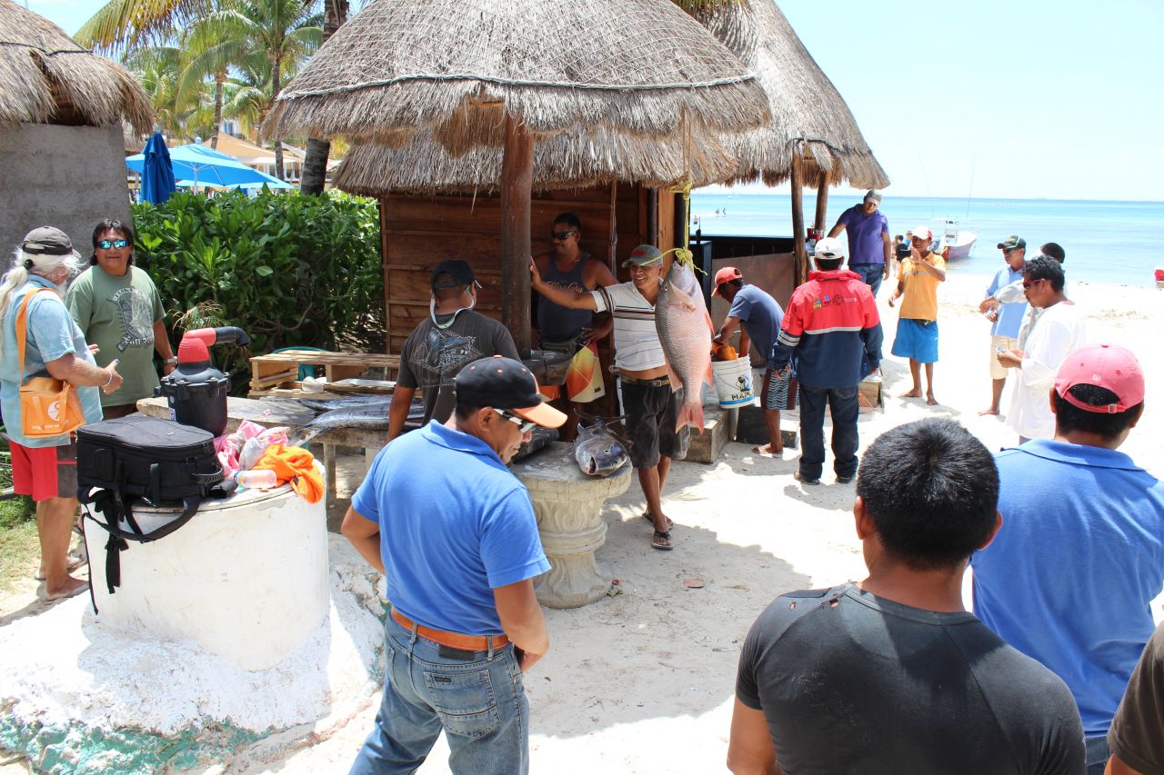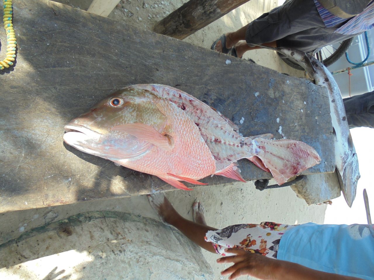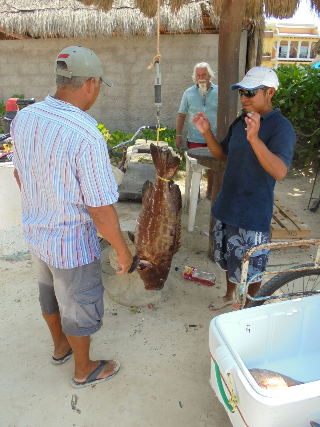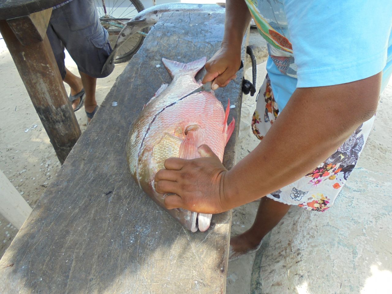 Beim Wiegen zurück am Strand sichere ich mir ein Filet des Schmackhaften Fisches.
