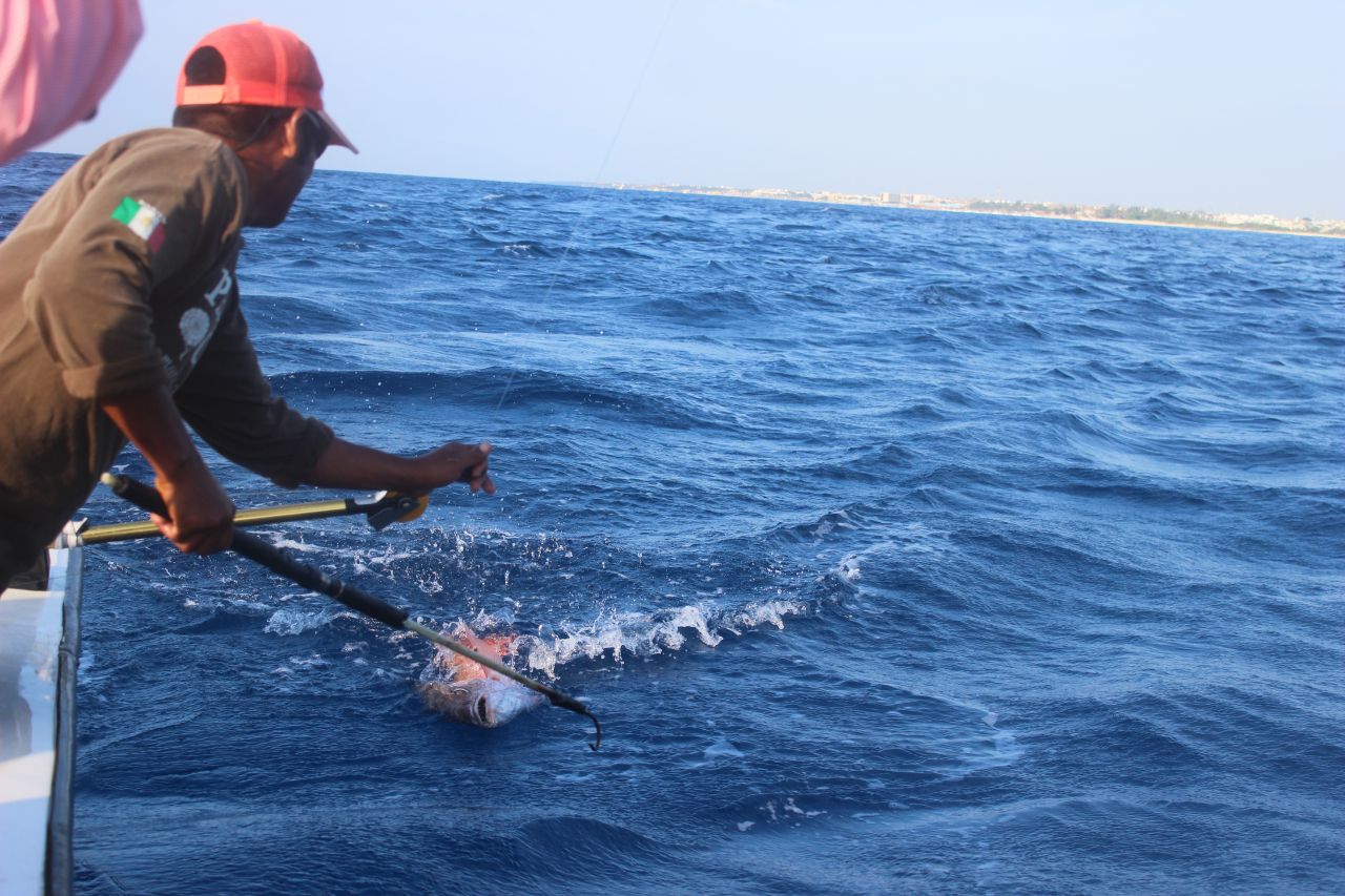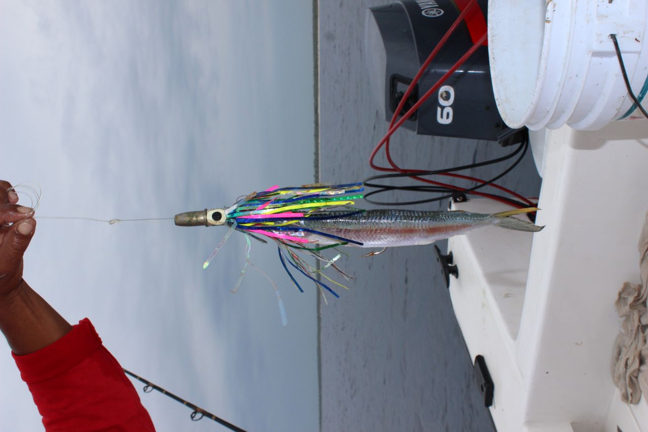 Ein schöner Mutton Snapper hat sich unseren Köder am Downrigger einverleibt.