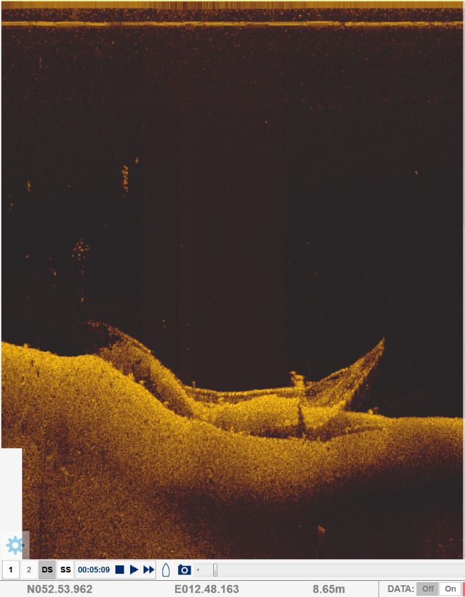 Hier sind zwei Bilder, die mir mein Freund Eyck zur Verfügung gestellt hat. Zu sehen ist ein etwa 30 m langes Wrack, offenbar mit noch gut erhaltenem Bootskörper. Tolle Bilder und ich hoffe, dass er bald noch mehr zu bieten hat.