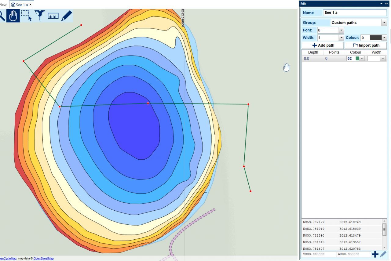 Nutze in der Usermap, Editmodus die Group "Custom Path". Neuen hinzufügen, Farbe vergeben, Zeichen.