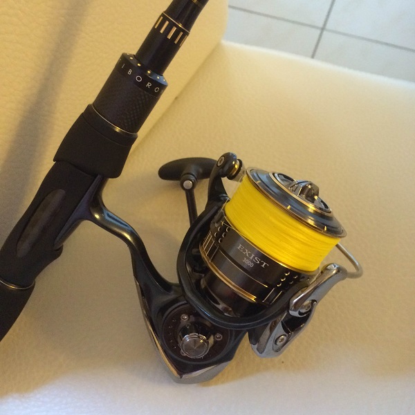 Nun hängt das neue Modell der Daiwa Exist an der Rute. Diese Rolle ist der absolute Hammer!!!