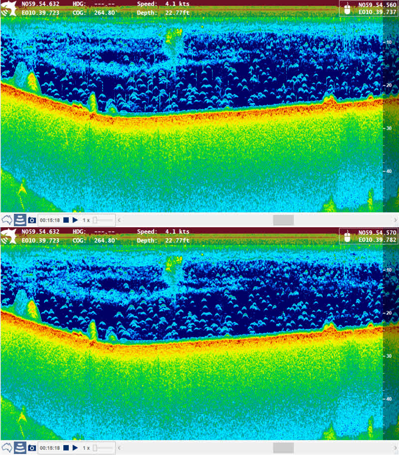 Typischer Weise werden Sonar Logs in viel höherer Auflösung aufgezeichnet