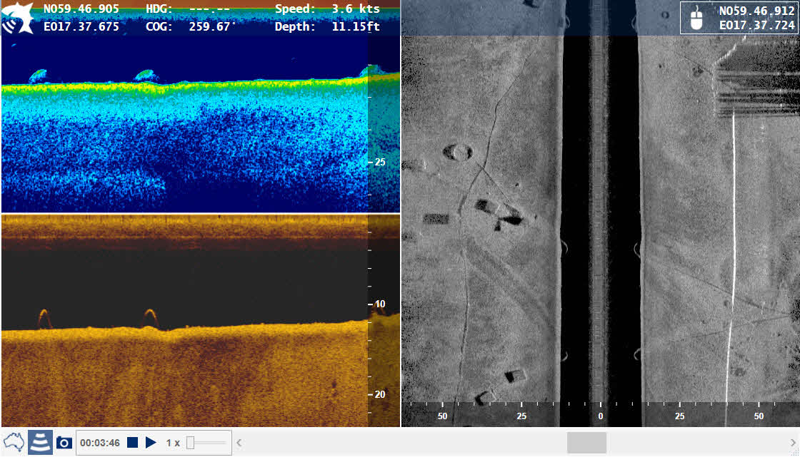 Die Karte oder die Position auf den Sonar Kanälen kann einfach mit der Maus