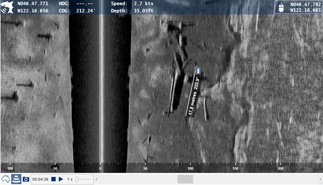 Distanzmessung und ermitteln der Höhe von ObjektenDer REEFMASTER Sonar Viewer erlaubte eine einfache "Klick und zieh" Messung