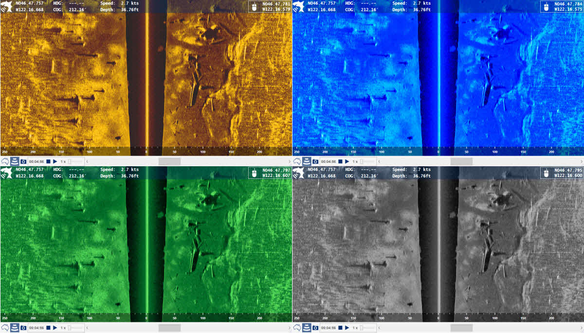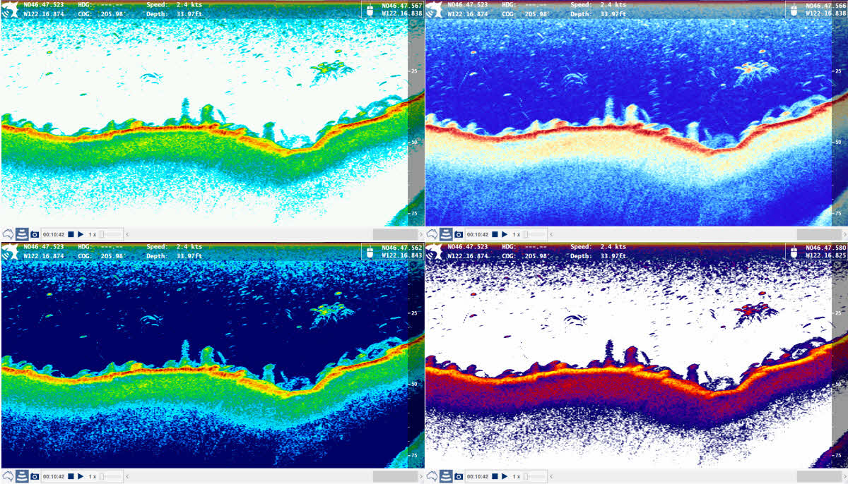 Verschiedene Farb Paletten in der 2D und Sidescan Sonar Ansicht.Suche dir aus der Vielzahl an Farb Paletten die heraus die dir am besten gefällt
