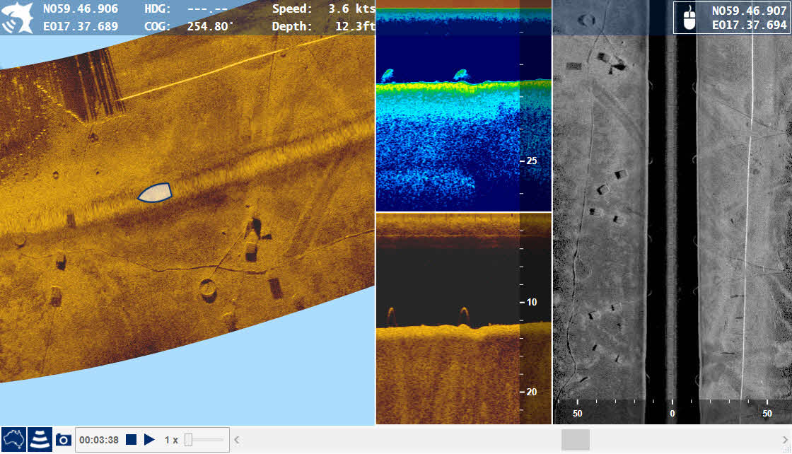 Der REEFMASTER Sonar Viewer kann noch mehr. Er kann Sidescan Daten in der