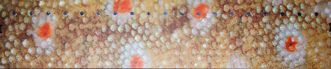 Vier kleinere Lureboards mit 80X17cm, mit den Dekoren Hecht, Barsch, Bach-  und Meerforelle.