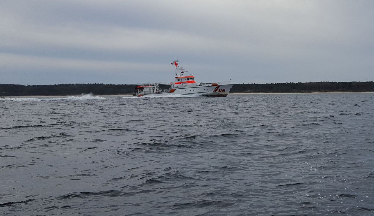 Einige Seemeilen weiter westlich war bereits am Sonntagvormittag der Seenotrettungskreuzer ARKONA/Station Warnemünde