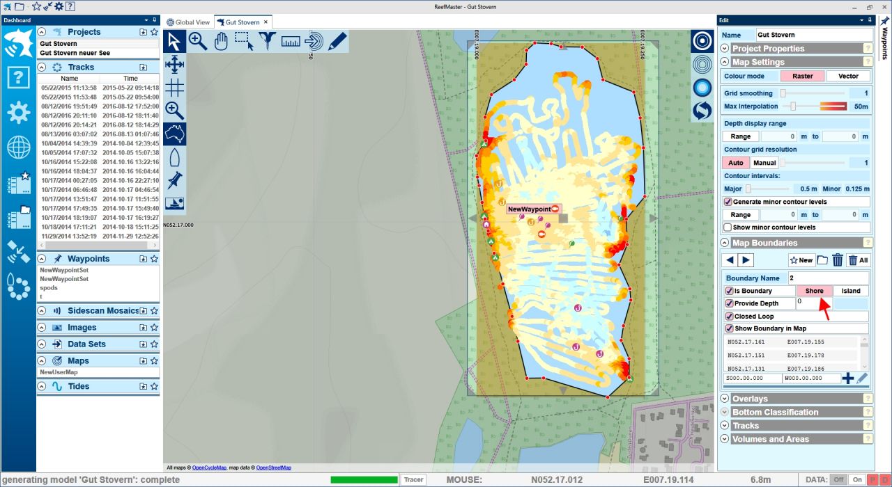 du hast die Trackdaten als Ufer/Inseln gekennzeichnet/importiert.