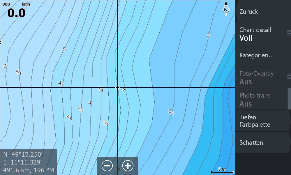 Die große Anzahl aufeinander folgender Tiefenlinien kann bei großen Tiefen und schroffen Anstiegen grafisch zum Problem werden (wir haben verschiedentlich darüber berichtete, etwa beim Test der Navionics-Karte im HDS Carbon). Wir werden noch solche schwierigeren Karten testen, die dann möglicherweise mit anderen Linienabständen arbeiten. Sofern das nicht der Fall ist, werden wir uns an C-MAP mit einem Verbesserungsvorschlag wenden.