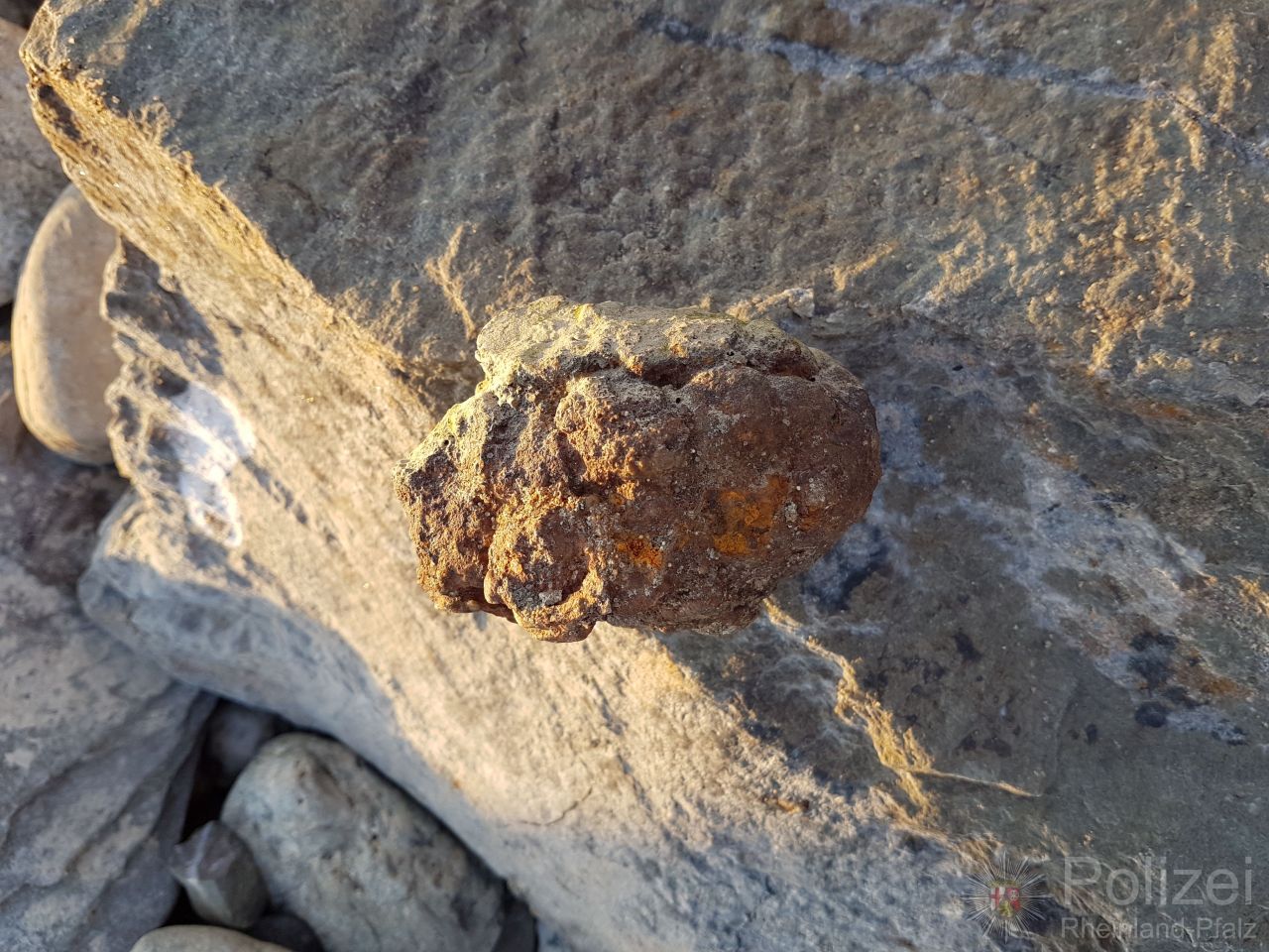 Spaziergänger entdeckt französische Splitterhandgranate am Rheinufer Foto: Wasserschutzpolizeiamt Rheinland-Pfalz | Lahnstein (ots) - Am Samstag, den 10.12.2016, gegen 15 Uhr, entdeckte ein Spaziergänger am Lahnsteiner Rheinufer (Rheinkilometer 582) eine stark verrostete Handgranate.