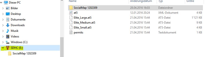 Auf der SD-Karte das Verzeichnis "SocialMap 1202309" erstellt.