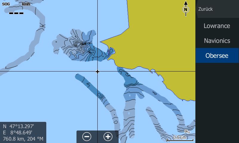 Wenn ich auf dem Echo anstatt Lowrance den Insign wähle bekomme ich eine Ansicht, wo mein Boot irgendwo auf dem Hügel steht  :lachen2: