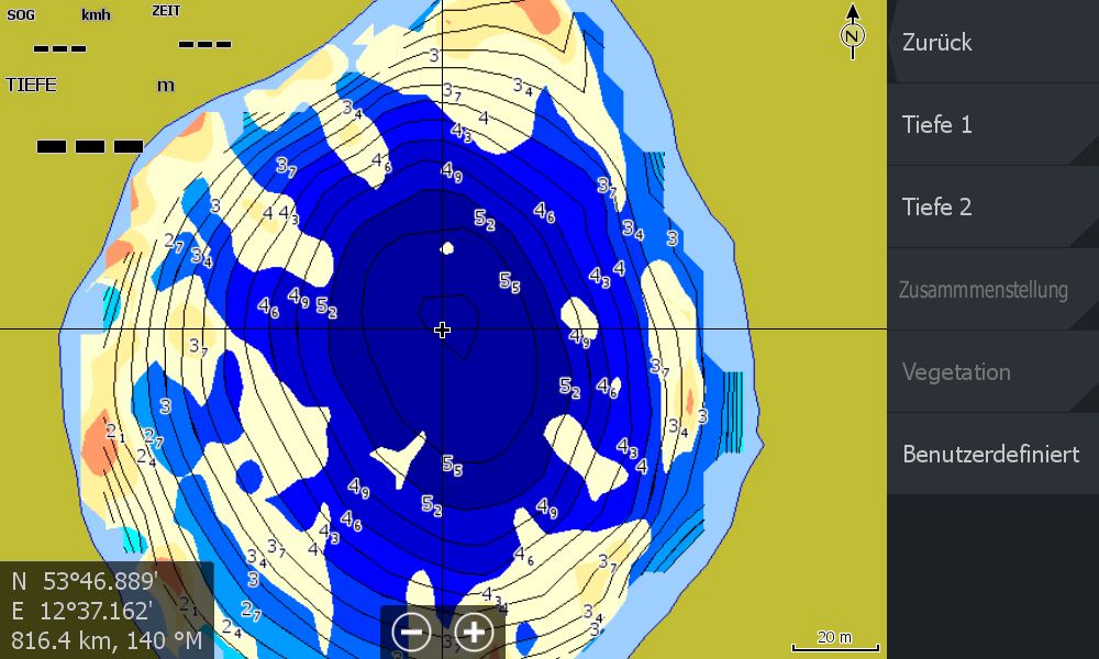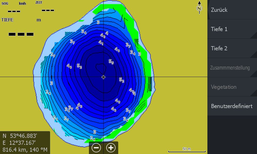 Gerne würde ich noch Karten für die Bodenhärte und Vegetation erstellen und abrufbereit auf dem Gerät haben. Transparenz funnktioniert nach meinem Wissen derzeit nicht für Elite Chirp Echolote. Also muss ich wohl eine zweite Karte auf der Speicherkarte hinterlegen.