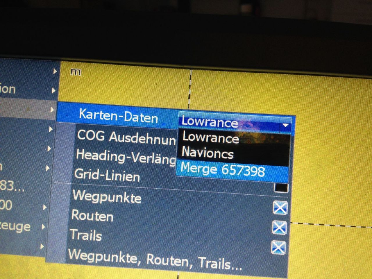 Bei den Karten-Daten habe ich Lowrance und das Merge xxxx angewählt, geht beides nicht....
