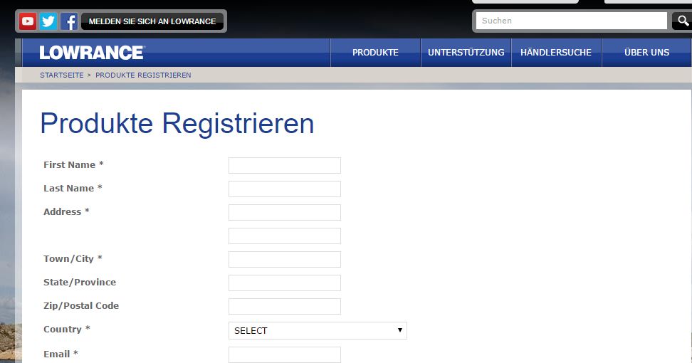 Derzeit funktioniert:      http://www.lowrance.com/de-DE/Produkte-Registrieren/