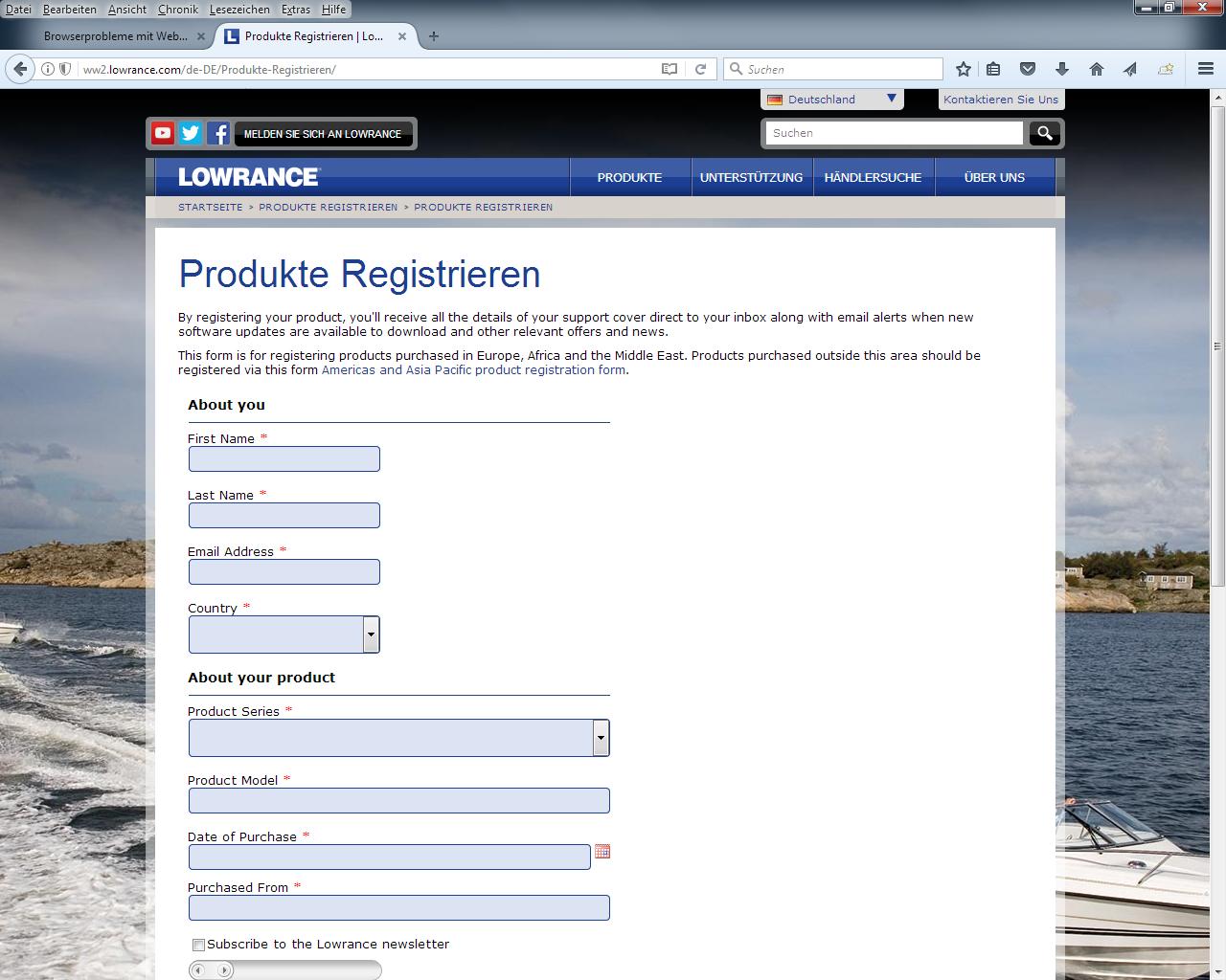 Re: Browserprobleme mit Webseite Lowrance.com und Lowrance.com/de-de/