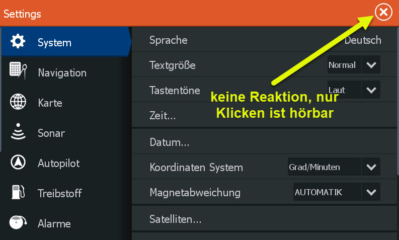 Das Problem zeigt aber in erster Linie, wenn man in die Systemeinstellungen wechselt und dann beim Antippen des „X“ im Bildschirm oben rechts keine Reaktion des Gerätes erfährt.
