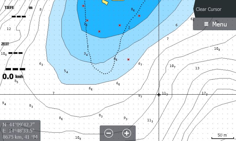 Ich habe jetzt mal bei mir auf einem Simrad-Gerät mit Navionics-Karte nachgeschaut.