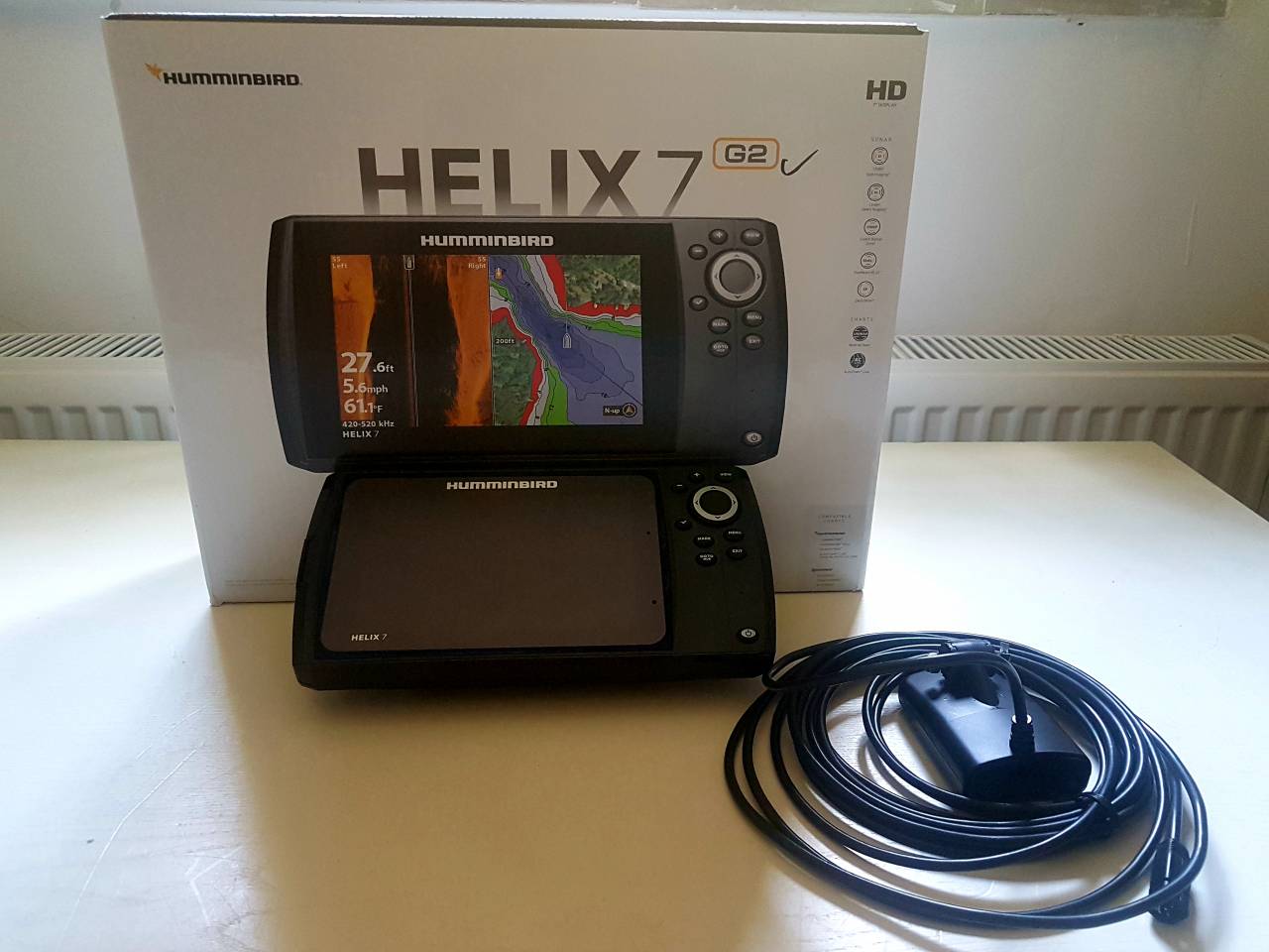 Biete ein Humminbird Helix 7 SI an mit noch 18 Monaten Gewährleistung und Original Rechnung. Das Gerät war 72 Stunden im Einsatz um mit Autochart Karten zu erstellen.Es hat von Anfang an eine Displayschutzfolie und hatt keine Beschädigungen. Der Geber hat leichte Kratzer funktioniert aber tatellos. Sonst sind alle Teile die im Orginal von Humminbird dabei waren mit in der Verpackung