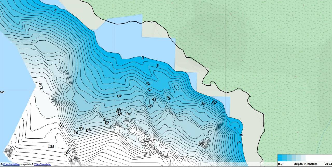 Hier auf die Schnelle noch ein Beispiel mit 30 m tieferem Wasser anhand von weitgehend selbsterklärenden Screenshots.
