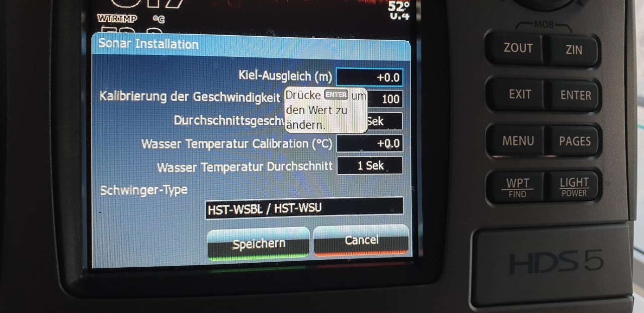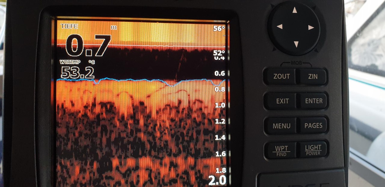Dann zeigte der montierte Geber (Lowrance Echolotgeber HST-WSBL 83/200) letztes Jahr unregelmäßig die Tiefen an.