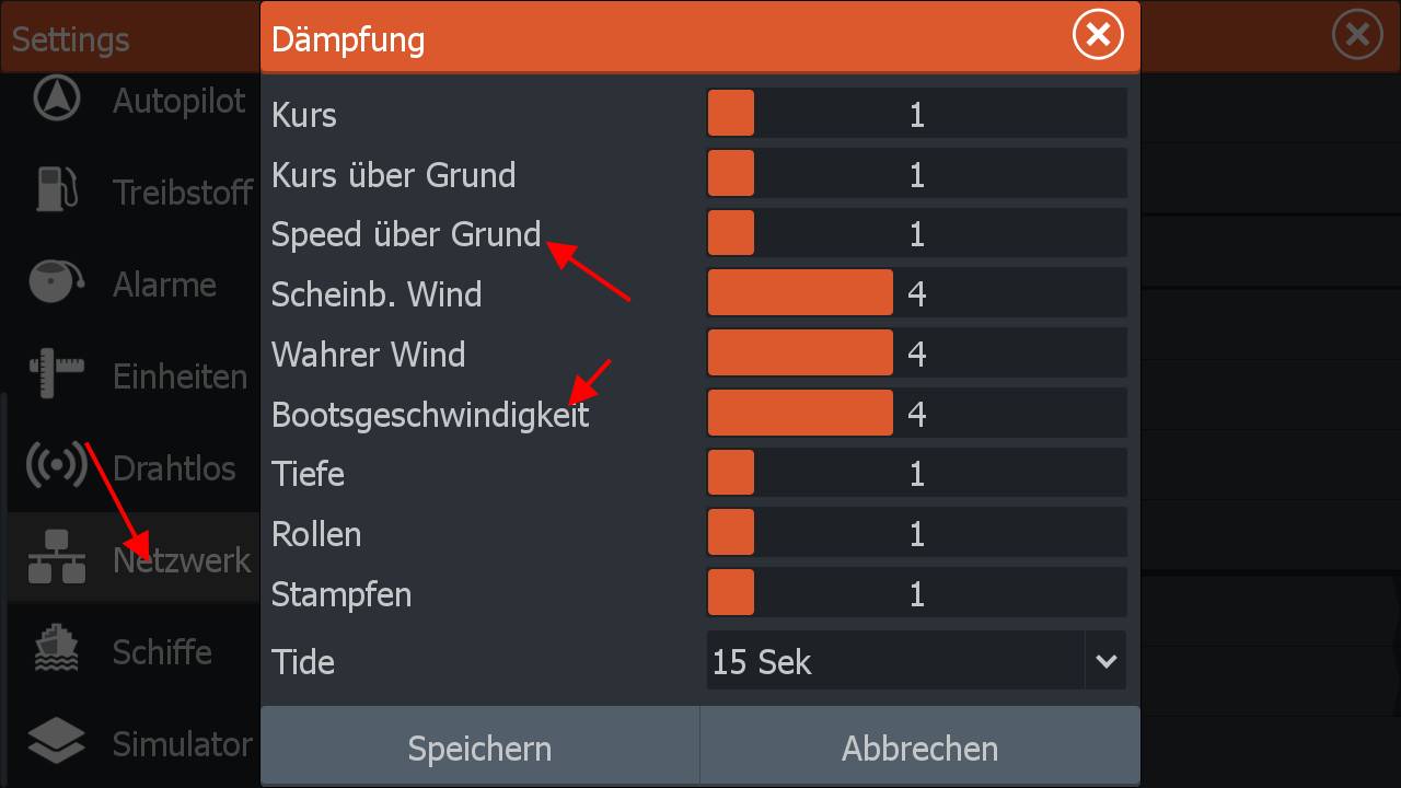 was da bei der Dämpfung und GPS Quelle eingestellt ist oder war.