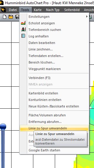 • Tools => Linie zu Spur wandeln, zum Ordner mit den ACD navigieren,
