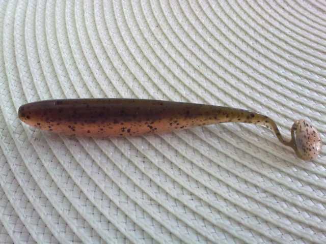 Hier nun noch ein Paar Fotos der Baits in den Farben Green Pumpkin Fire und Sight Flash.