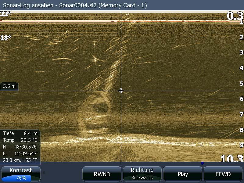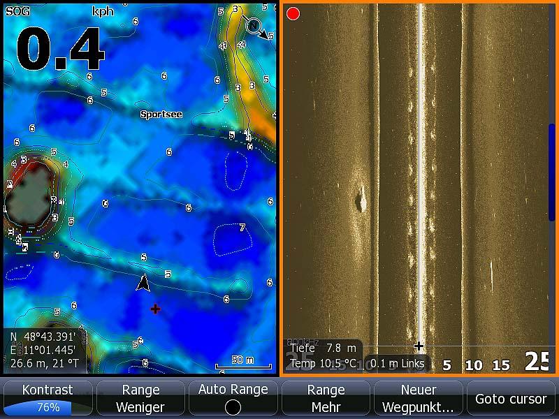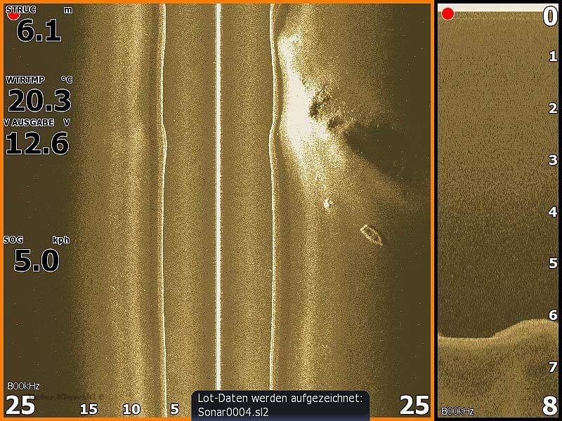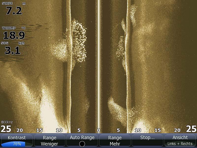 Das auf dem rechten Bild ist die Vergangenheit mit 25 links und 25 m rechts vom Boot.
