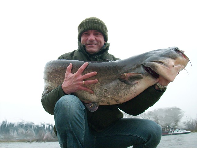 Wurf an die Strömungskante und zack....Einschlag!Nach der ersten Flucht war klar, ein Wels hängt an der anderen Seite und klar wieder an der falschen Rute (immer an dieser die Welsbisse).