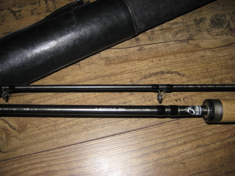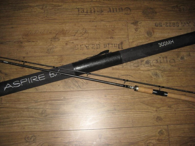 -eine zweimal gefischte Shimano Aspire Spinnrute Modellreihe "BX" in 3,00m Länge und einem WG von 15-40g.
