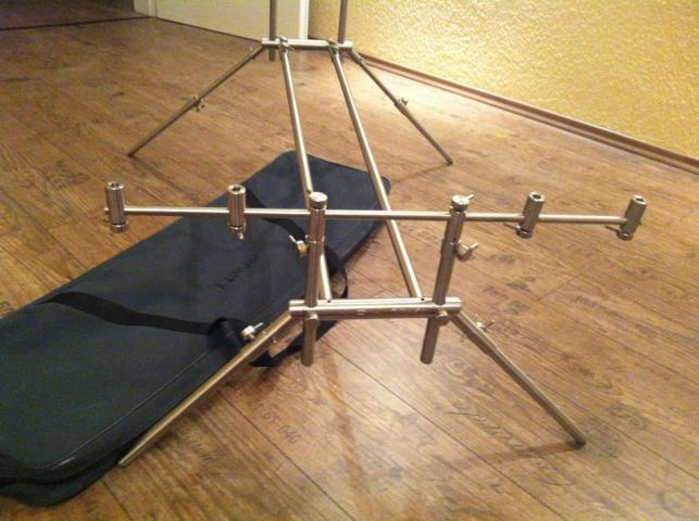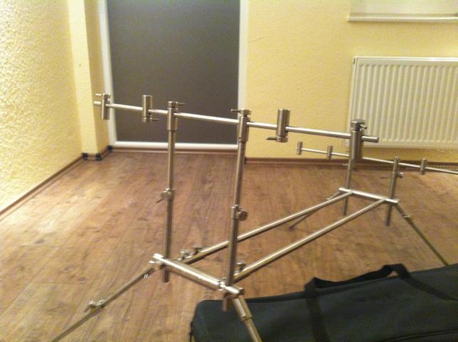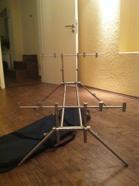 ich hatte mir Anfang des Jahres für eine einmalige Wels-/ Stör Jagd ein absolut hochwertiges Rodpod aus dem Hause Daiwa zugelegt. Es ist wie auf den Bildern zu sehen in etlichen Variationen verstellbar und es besteht komplett aus Edelstahl- es kann nicht gammeln und ist ultrastabil!!! Ich habe für das Wahnsinnsteil 290,-€ gelatzt doch jetzt steht es rum und staubt mir ein, ich würde mich freuen wenn es einen neuen Besitzer finden würde der Spaß an "Firstclass"- Produkte hat. Auf einen Preis wird man sich sicher einigen können...