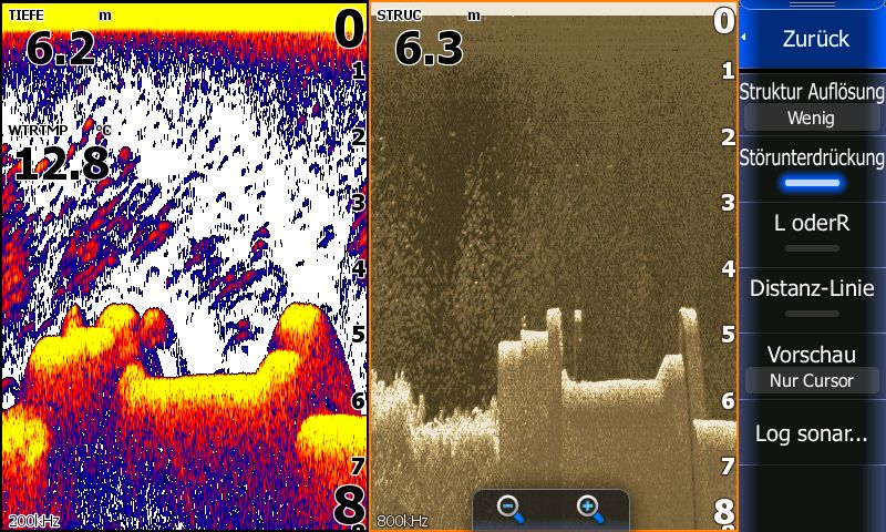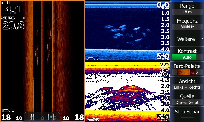 Mehr ist eigentlich nicht drin, es sei denn, man bekommt eindeutige Bilder mit 455/8oo kHz, etwa ob Bäume, Äste, Steine, Wracks o. ä. vorliegen