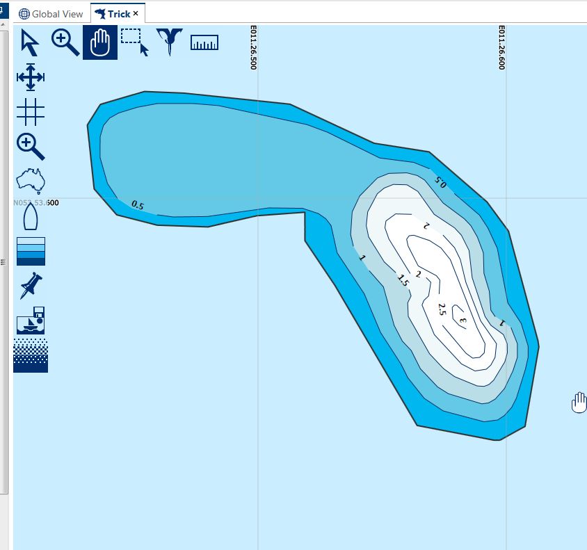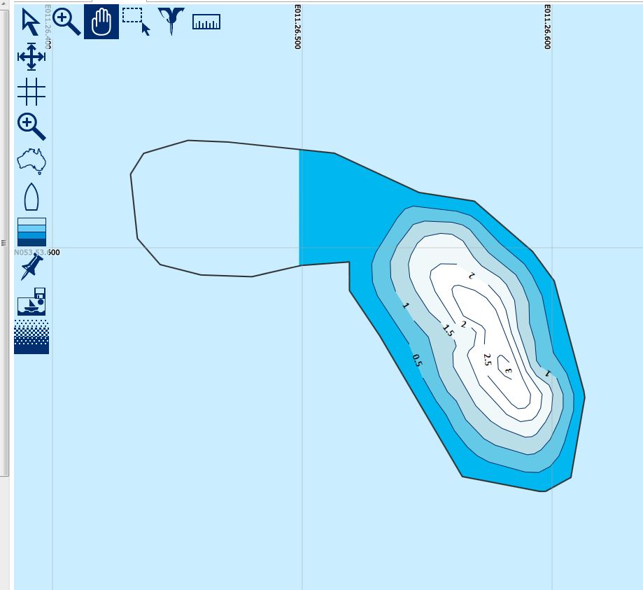 Es gibt Wege, wie man eine ästhetisch und der Wirklichkeit besser entsprechende Karte hinbekommt, auch wenn diese dann nicht 100 % stimmt. Mit diesem Hilfsmittel könnte man aber auch Tiefenlinien mit fixen Tiefenwerten aus anderen Quellen einfügen und in der späteren RM-Karte mit verarbeiten (ohne Garantie auf Fehlerfreiheit). Interesse?