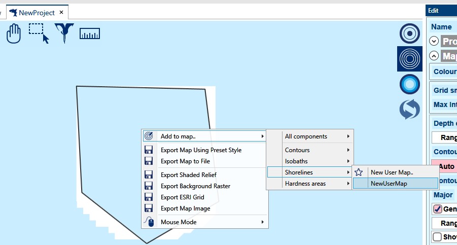 Das heißt bei der user map alles bis auf die shoreline löschen und dann "write to file"?