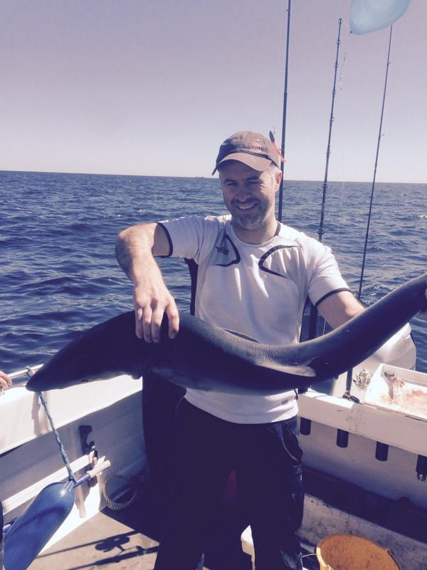 ersten Blauhaie da und auch ruckzuck am Haken.